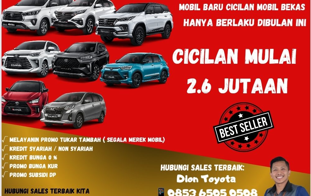 Toyota Padang - Melayani penjualan mobil secara Cash dan Credit untuk All-Type Mobil Toyota. Pengajuan secara kredit dapat melalui Mitra Finance kami tentunya dengan Down Payment Rendah dan Angsuran Terjangkau. Harga yang tertera belum masuk promo diskon atau cashback yang tersedia, dan harga tersebut dapat berubah kapan saja.